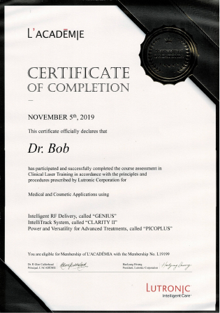 We are certified as Key Opinion Leader for the leading International Aesthetic Device Manufacturer Lutronic